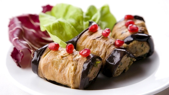 ბადრიჯანი ნიგვზით - ნიგვზითა და არომატული სანელებლებით შეზავებული შემწვარი ბადრიჯანი.